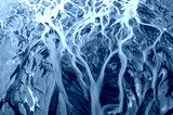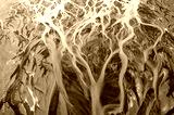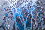 Aerial view of glacier river system in Iceland. Beautiful natural backdrop.