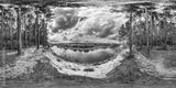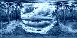full seamless spherical hdri panorama 360 degrees angle view on high bank of wide river neman near pinery forest in windy day with beautiful clouds in equirectangular projection, ready VR AR content