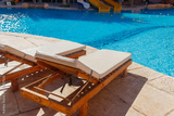 Chaise longues near a swimming pool. Concept of spa, rest, relaxation, holidays, resort