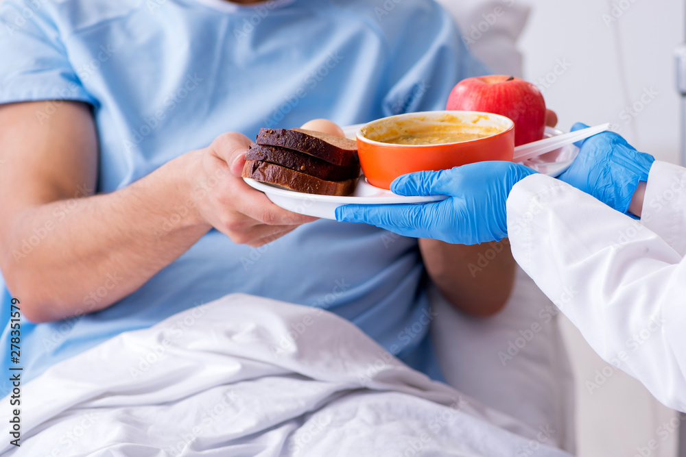 Male patient eating food in the hospital