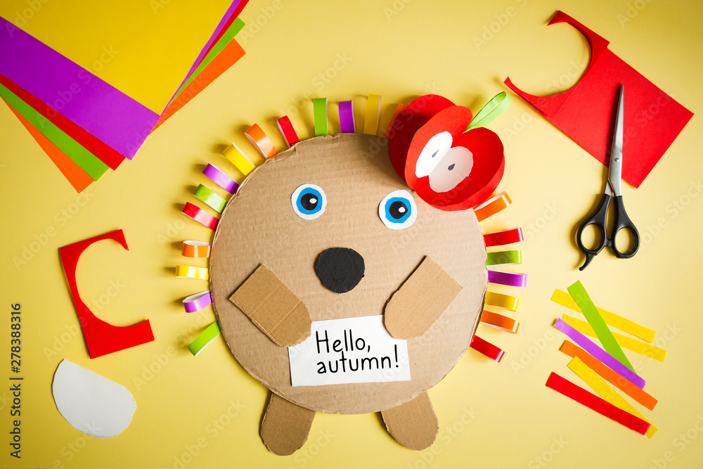 creative children's crafts made of colored paper and cardboard. concept ideas handmade for kindergarten on the theme of autumn. diy.