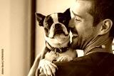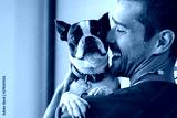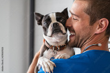 Vet cuddling pet dog