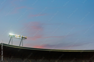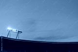 Stadium lights against blue sky