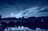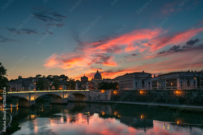 Rome cityscape at sunset with view of St Peters Basilica in Vatican