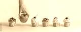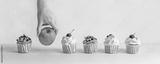 apple among cupcakes, healthy food choices, female hand picks green apple, fatty sweet food, diet, weight loss