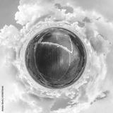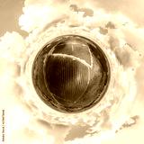 globe panorama. stereographic projection of solar panels farm. 360 degree panorama. little planet