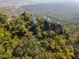 Beautiful aerial view of the floating pagoda in temple of Wat Chaloem Phra Kiat, One of the most tourist attraction place in Lampang province of Thailand.