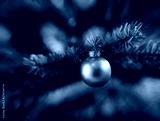 Traditional golden color single Christmas ball ornament hanging on artificial tree