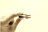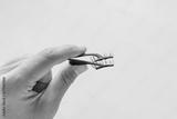 First person view of woman applying false magnetic eyelashes with metal applicator. Person holding pince to apply magnet fake lashes beauty trend.