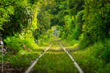 Train track or locomotive line thru the tree tunnel like the famous tunnel of love, which is secret location in urban area, Bangkok.