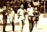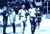 Group of talking students in city