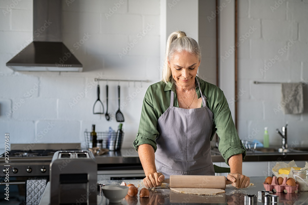 Senior woman rolling cookie dough at home
