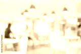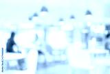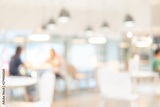 Abstract blurred restaurant background. Blurry cafe or coffee shop with dining tables, chairs and other decorations. Blur backdrop for design element. Food and beverage concept.