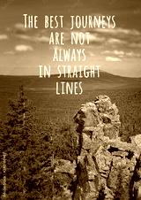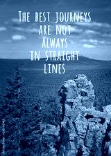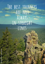 The best journeys are not always in straight lines - inspiration quote on natural mountain landscape. picturesque view of mountain, theme for travel backdrop design card.