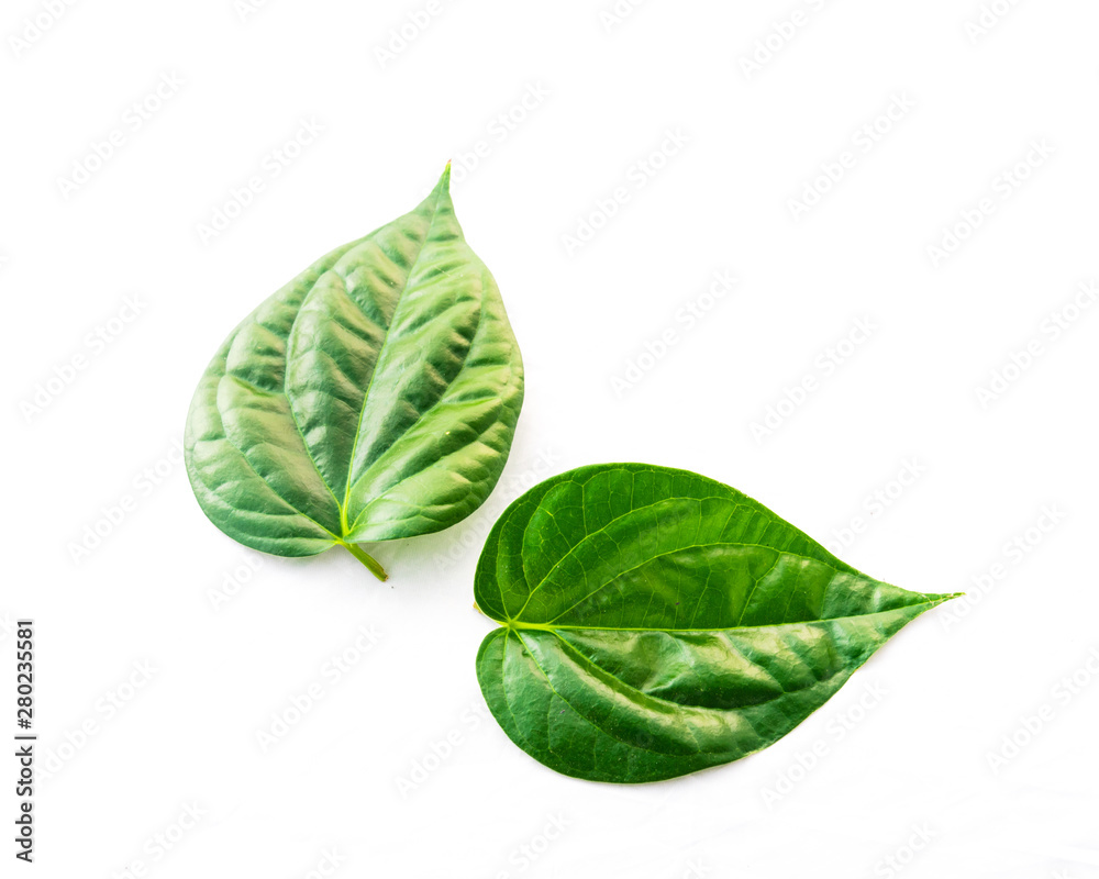 Studio shot close-up two raw betel leaves or paan isolated on white