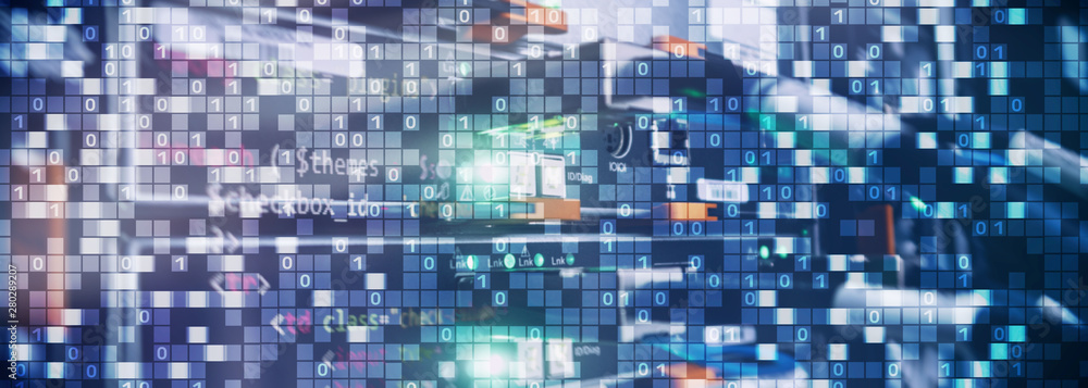 Binary code on datacenter background. Cyber space concept. UniqueTechnology Wallpaper