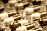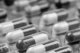 Colorful antibiotic capsule pills in blister pack. Pharmaceutical industry. Pharmacy drugstore background. Antibiotic drug resistance. Antimicrobial capsule pills for treatment infection in hospital.