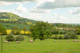 Sheep grazing in the summertime in England.
