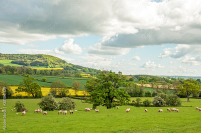 Sheep grazing in the English countryside.