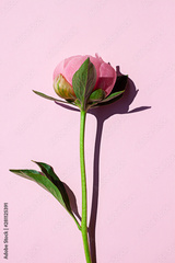 Beautiful pink peony flower blooming on the pink background. Close up