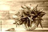 Young nettle leaves in basket on wooden rustic background, stinging nettles, urtica.
