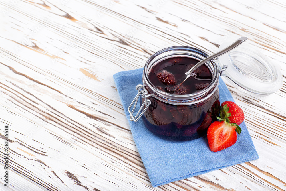 strawberry jam on table