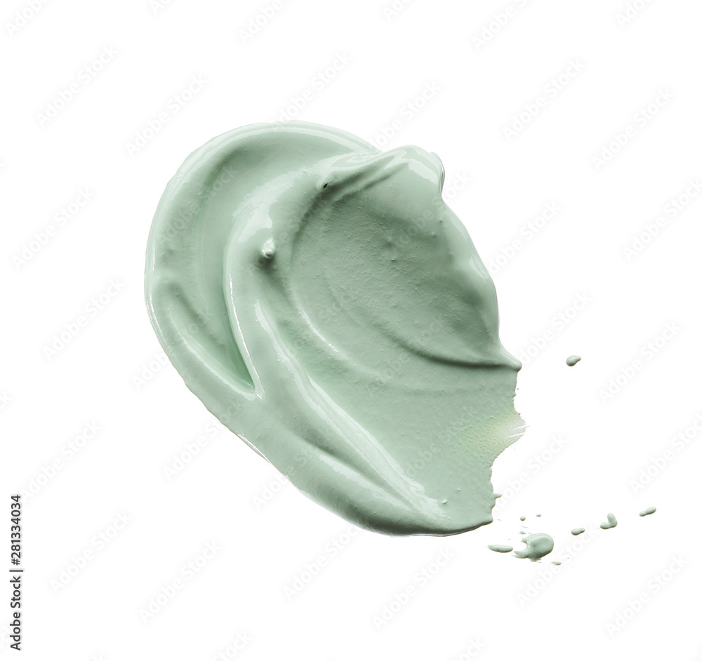 Gently green strokes and texture of face cream or acrylic paint isolated on white background