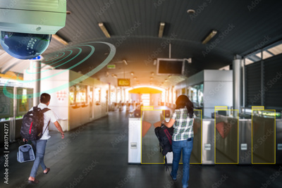 A Dome CCTV infrared teachnologyn 4.0 system signal for counting number of passengers service and security people at city scape traffic of station.