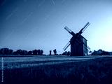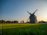 Old windmill on the green field.