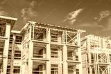 Apartment building under construction on sunny day