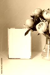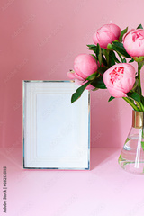 Concept floral frame on the pink background with peony flower bouquet, Copy space