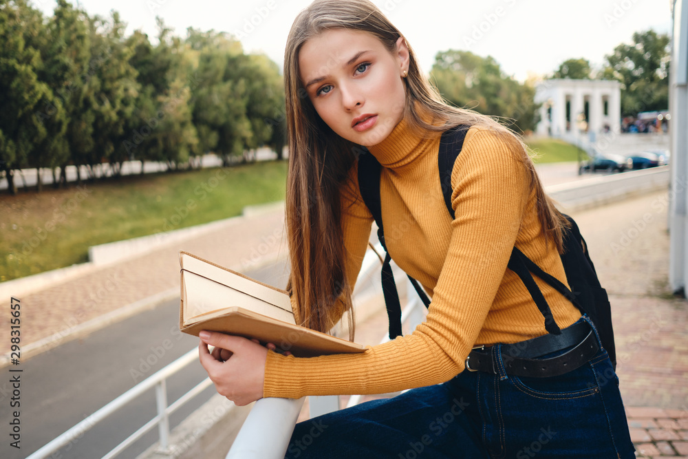 Young attractive woman in white bathrobe with cosmetic mask on face sitting on bed covering eye with cucumber dreamily looking aside in modern cozy hotel