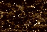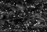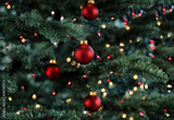 Glowing Christmas tree decorated with red and gold ornament balls for the holiday season