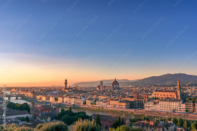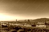 Cathedral of Santa Maria del Fiore and Florence rooftops with mountains