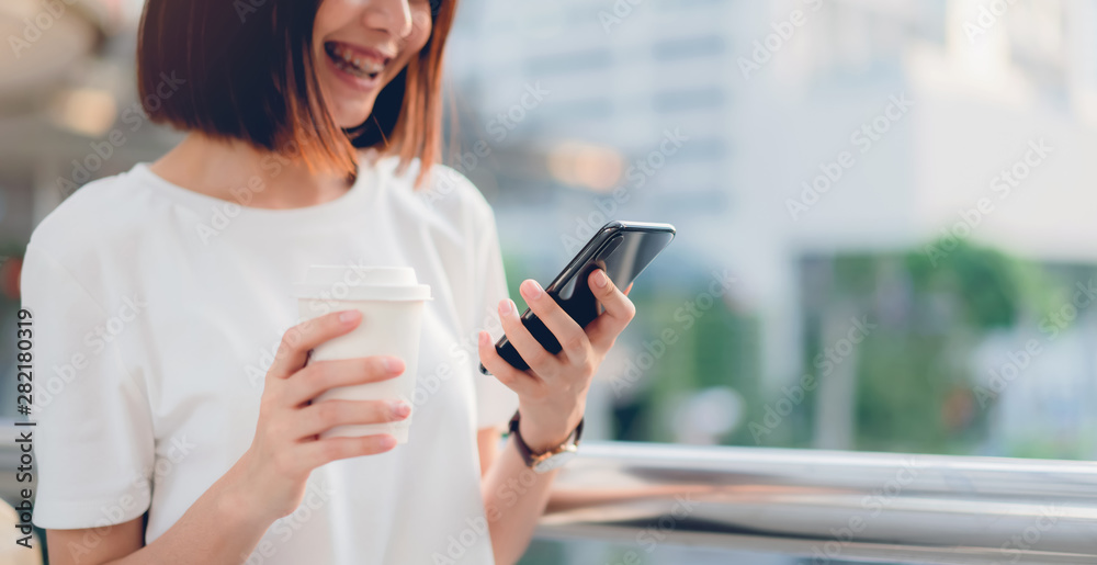 Woman using smartphone, During leisure time. The concept of using the phone is essential in everyday life.