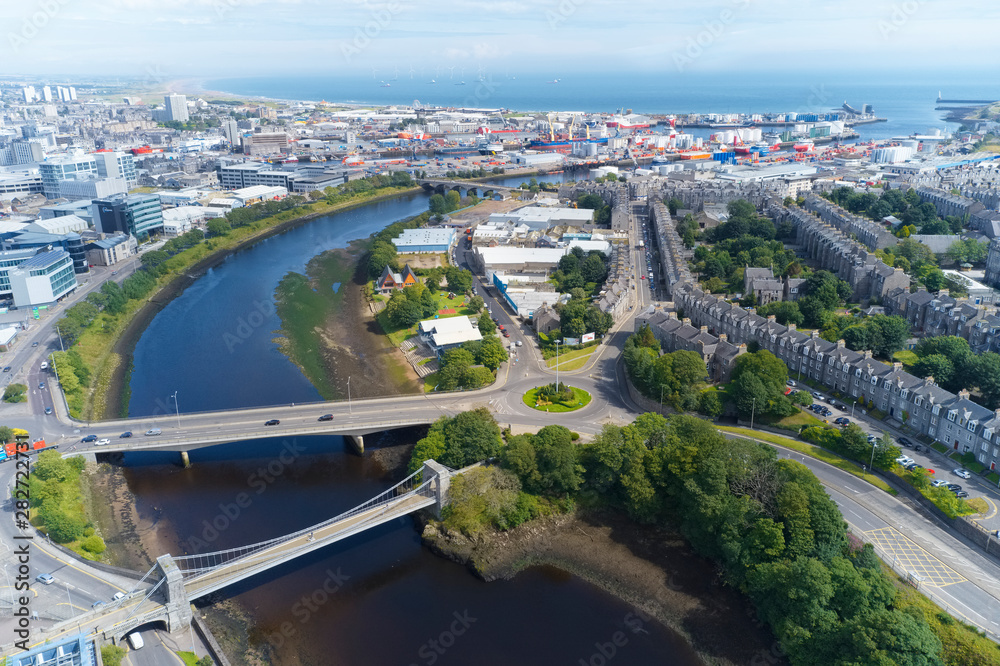 Aerial view of Aberdeen as River Dee flows to the North Sea