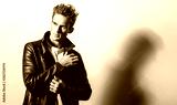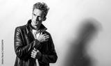 Handsome young man in classic leather jacket. Black-white studio portrait.