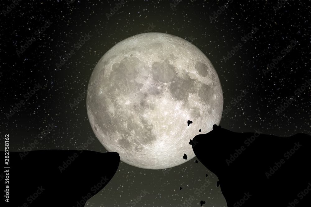 Full Moon in night sky. (Elements of this image furnished by NASA.)