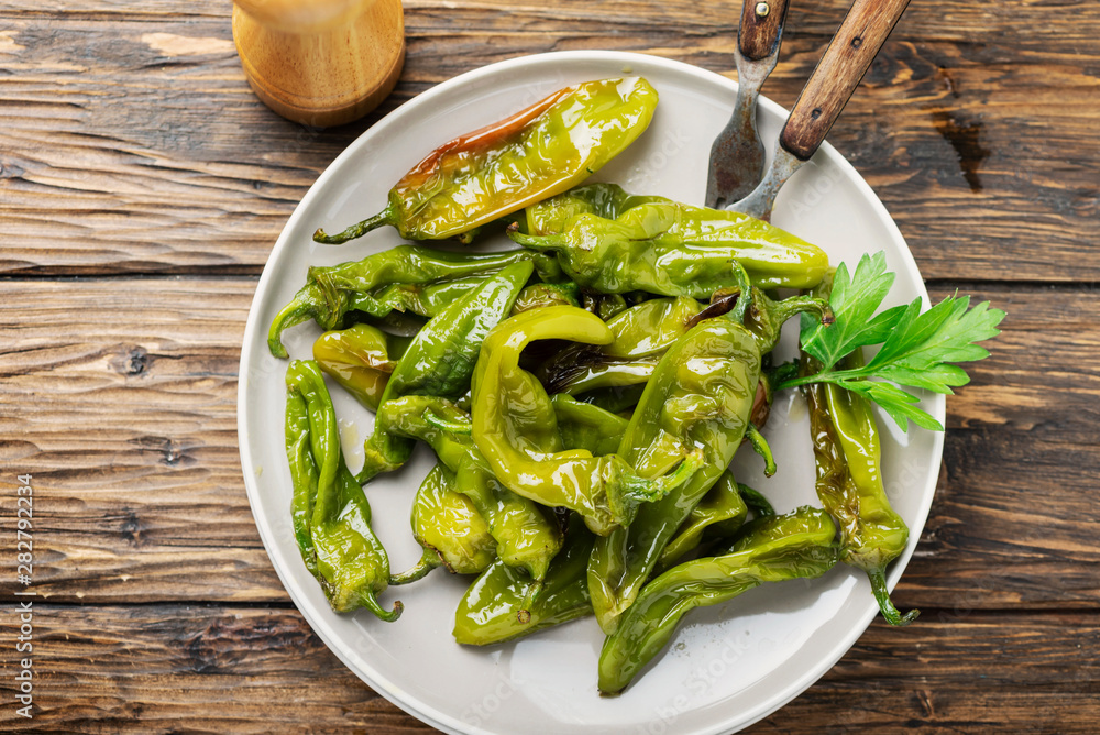 Cooked green sweet italian pepper