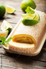 Cake roll with lime and white chocolate