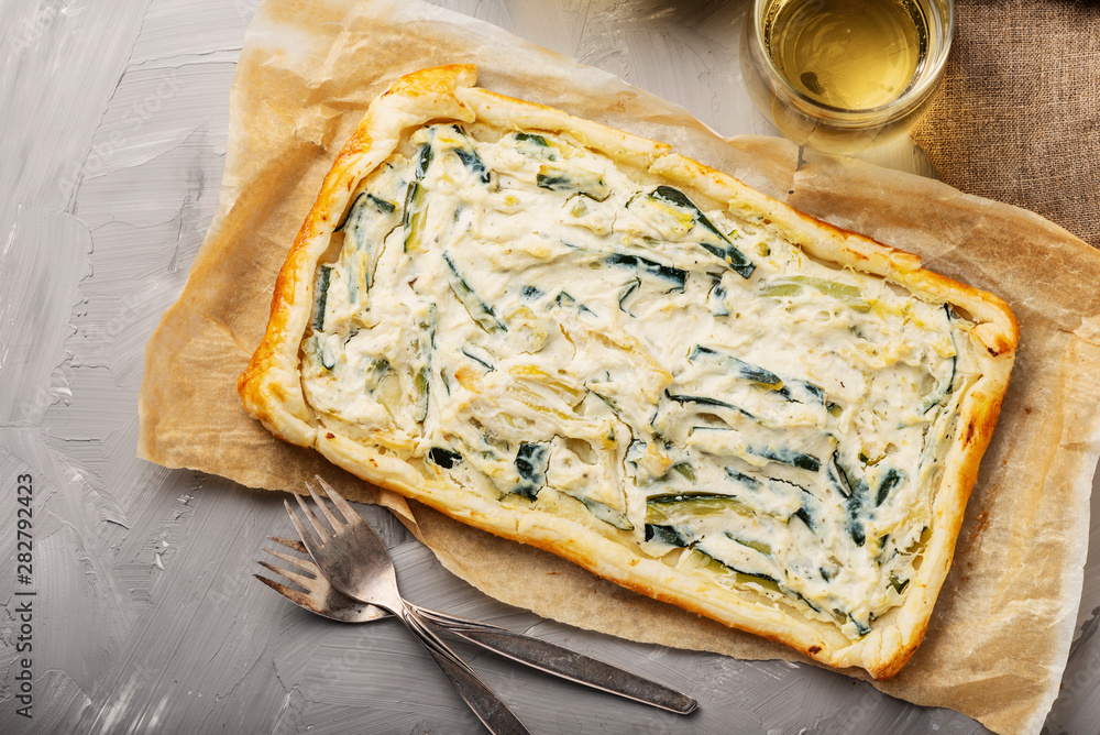homemade tart with ricotta and zucchini
