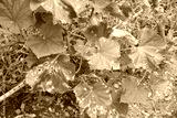 Colletotrichum orbiculare or anthracnose of cucurbits on leaves. Cucumber plant with disease in the vegetable garden.