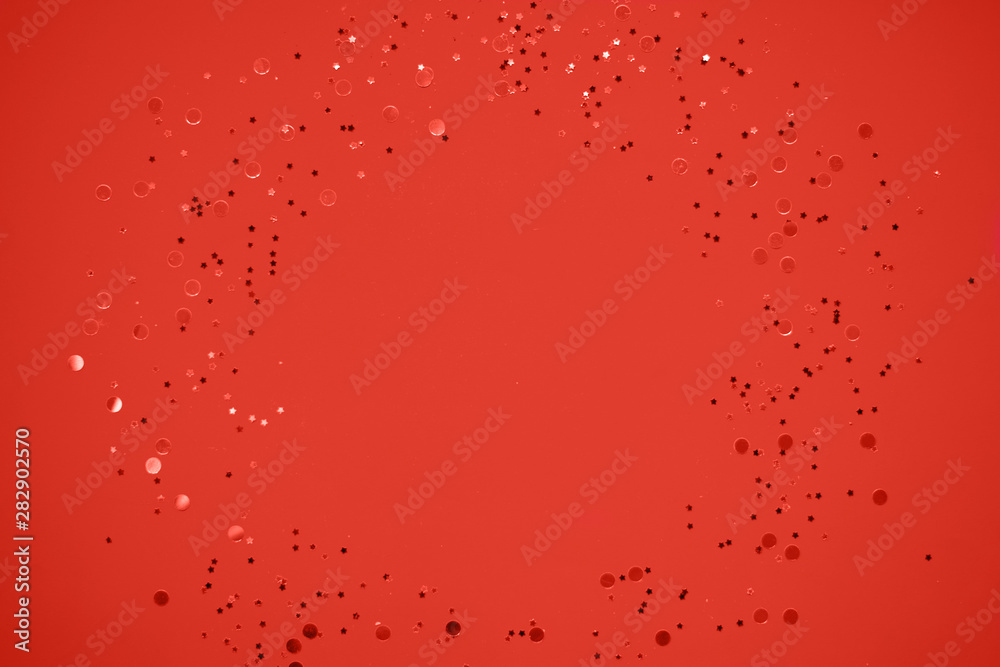 Silver glitter on coral trendy background.