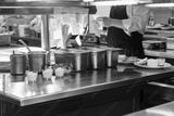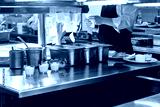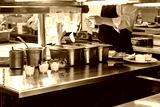 Food orders on the kitchen table in the restaurant, chief reading orders and cooking in professional restaurant kitchen
