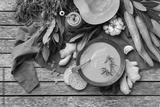 Seasonal spicy fall autumn creamy pumpkin and carrot soup
