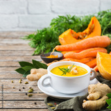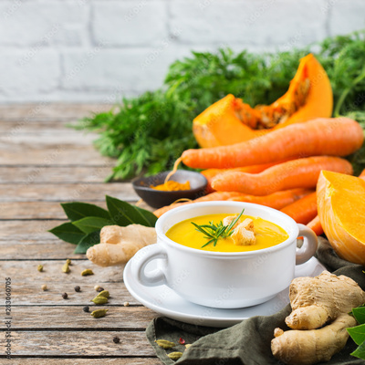 Seasonal spicy fall autumn creamy pumpkin and carrot soup