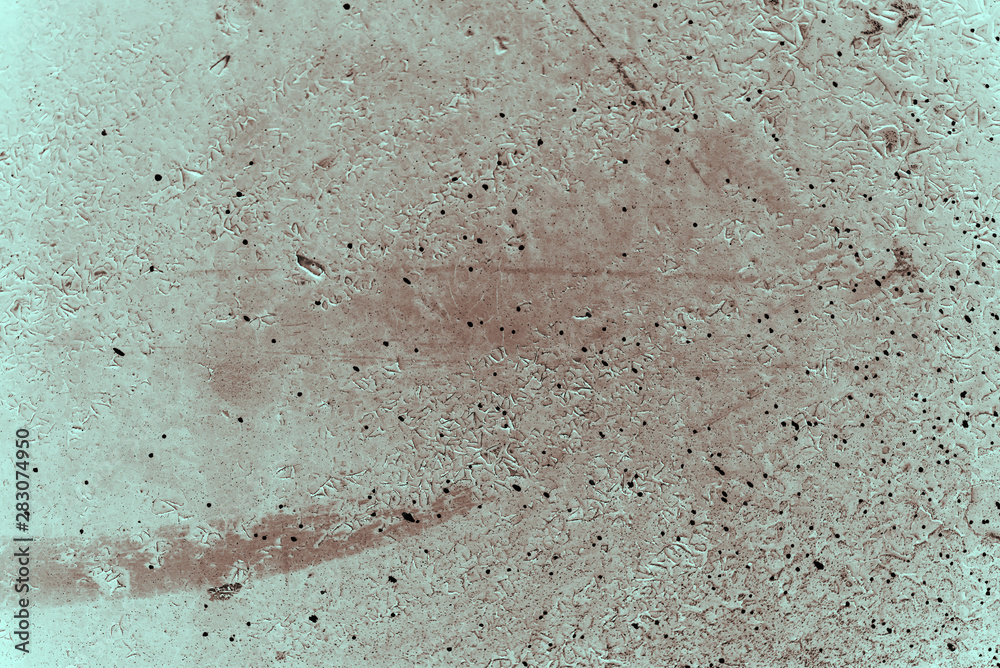 Vintage cyan background. Rough painted wall of hazel color. Imperfect plane of brown colored. Uneven old decorative toned backdrop of blue tint. Texture of azure hue. Ornamental stony surface.