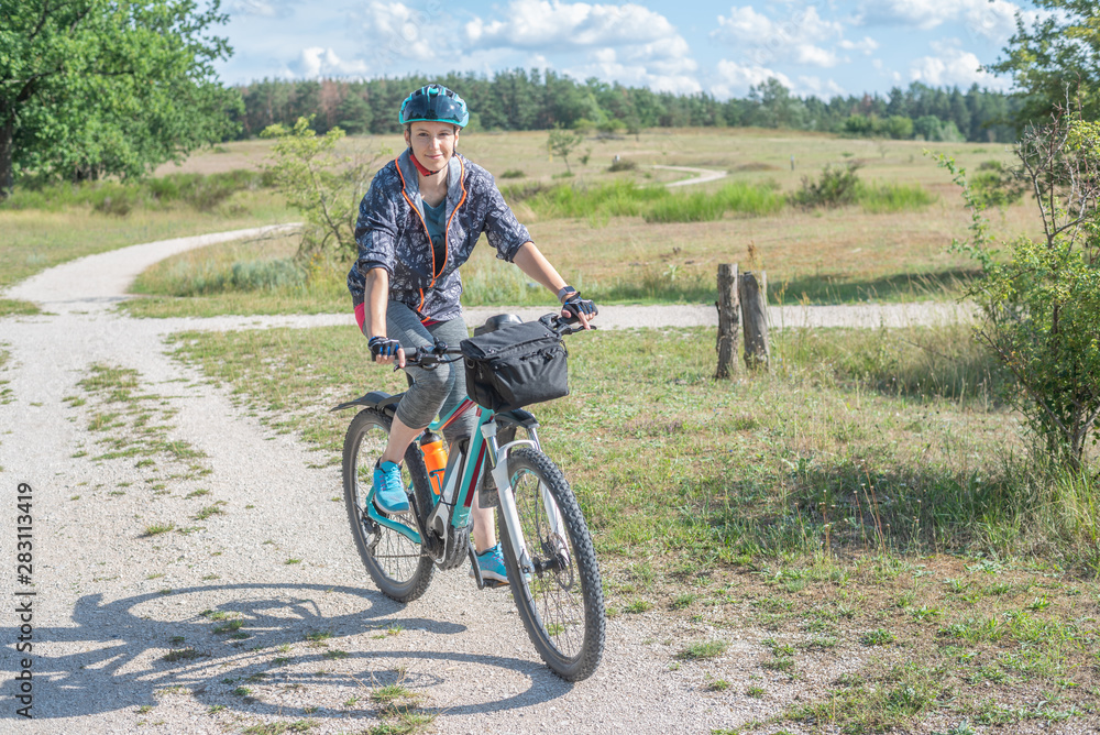 Radfahrerin in der Natur