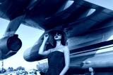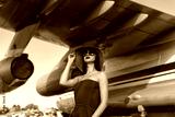 Brunette in a dress at the old airport