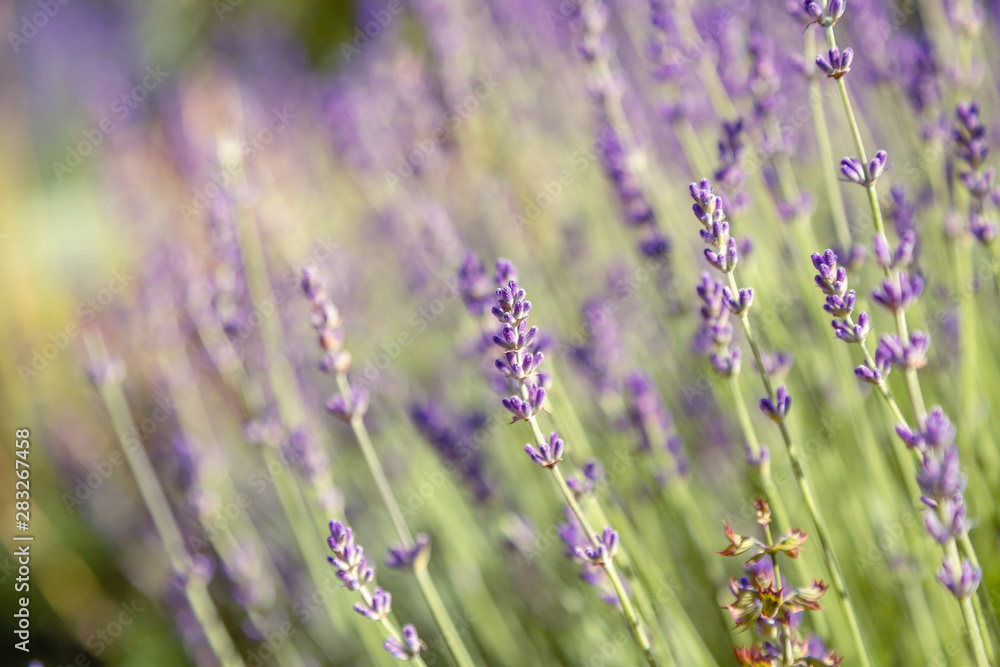 Floral background of lavender blooming. Purple lavender flowers on natural background.